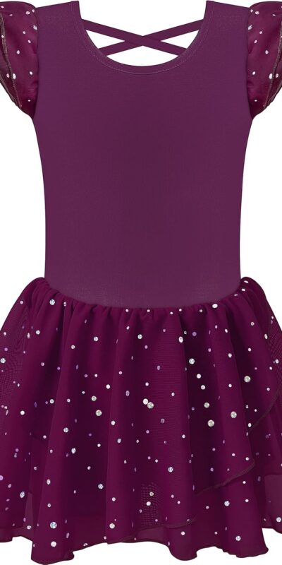 DIPUG Ballet Leotards for Girls Ballet Leotard with Skirt Toddler Dance Leotards Flutter Sleeve and Criss-Cross Back
