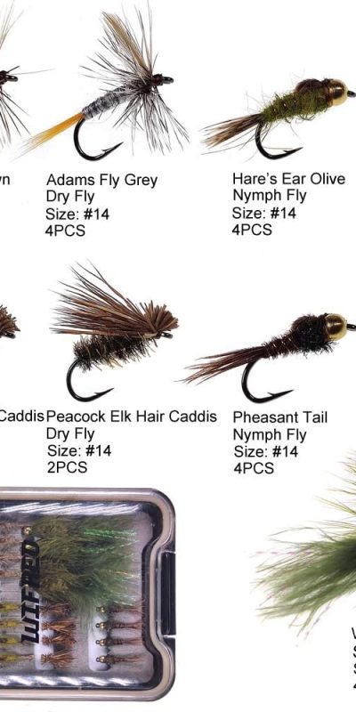 Wifreo Fly Fishing Flies Assortment with Waterproof Fly Box, 28/40/64/92/120pcs Dry/Wet/Nymph/Streamer Flies, Trout/Bass/Panfish/Salmon Fishing Flies This beginner-friendly fly set includes top-rated patterns for catching target fish.This set includes 5 tested, effective patterns and a total of 28 pieces to cover a variety of fishing needs.Well-tied on high-quality, barbed fishing hooks…