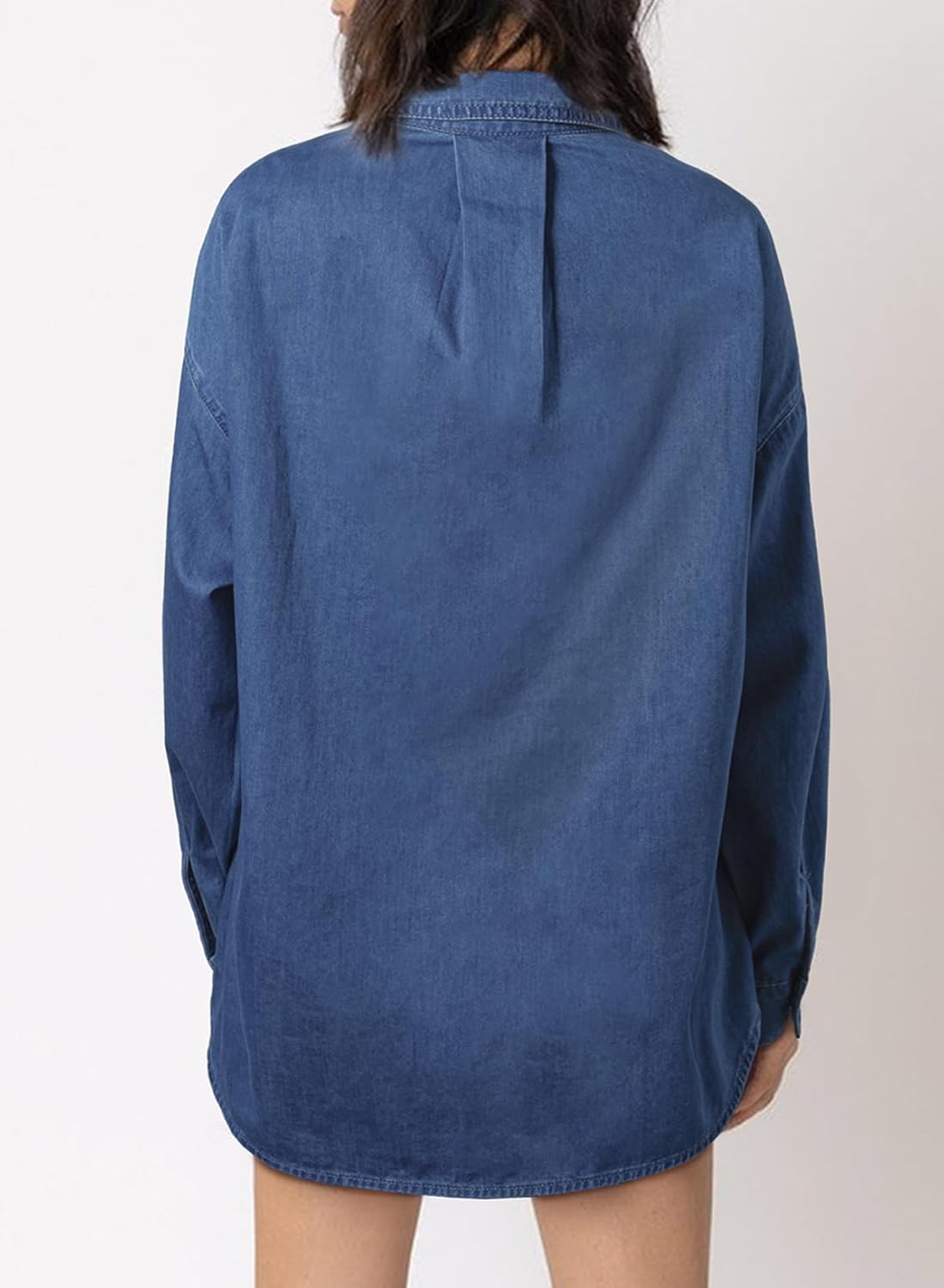 2024 Denim Button Down Blouse – Long Sleeve V Neck
