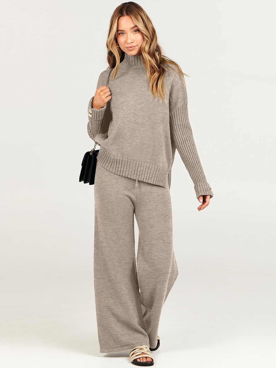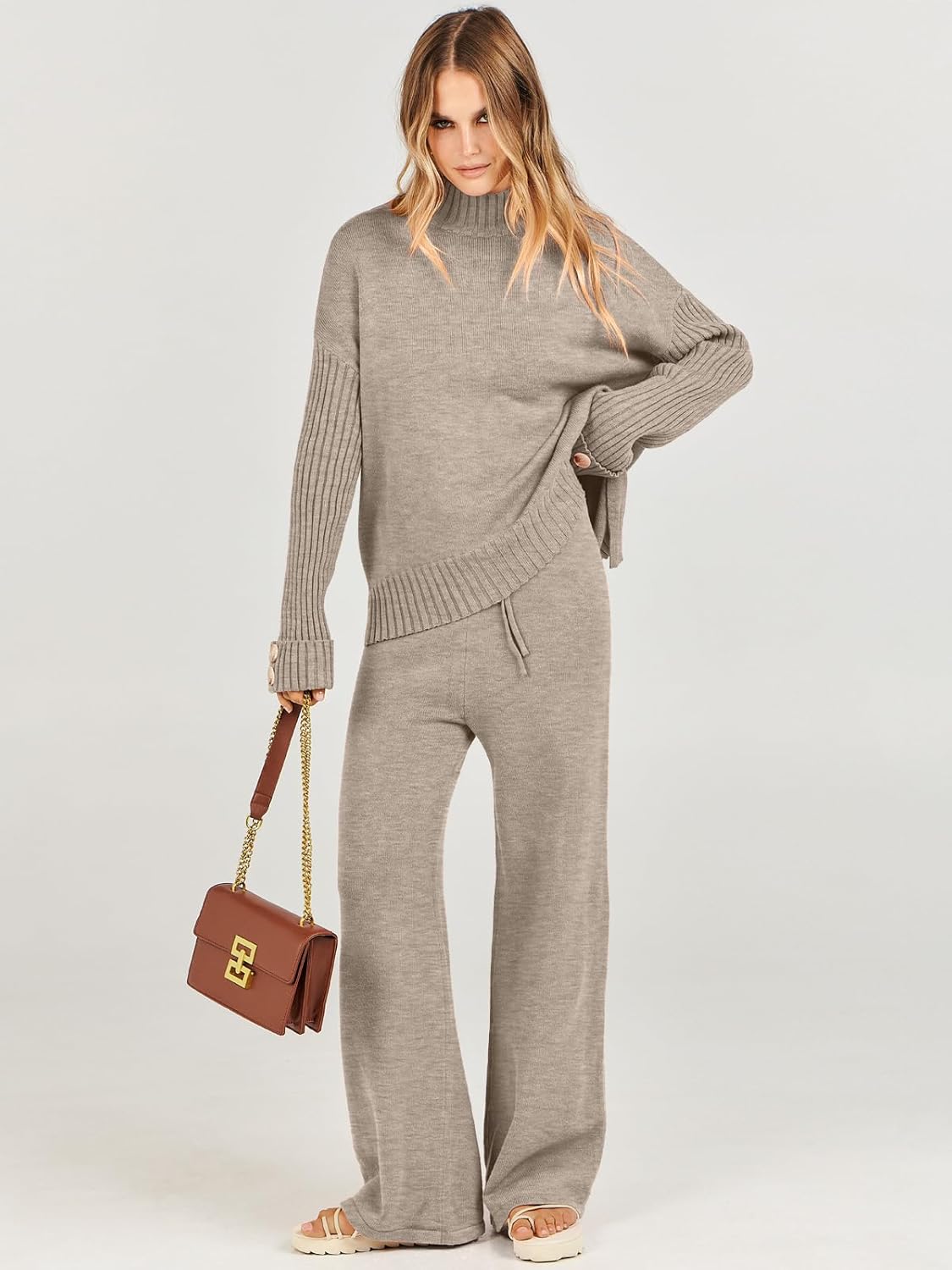 - Knit Sweater Tops Wide Leg Pants Trendy Clothes
