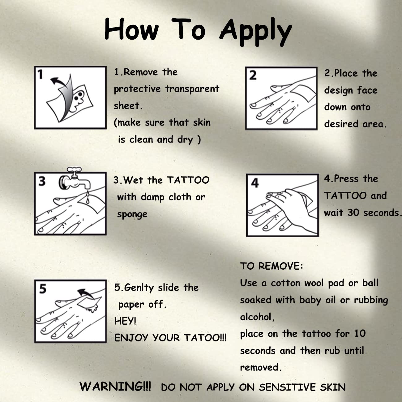 - Friendly Reminder: Tattoo stickers must not be wet with water in advance, must be wet on the body for long-lasting wear