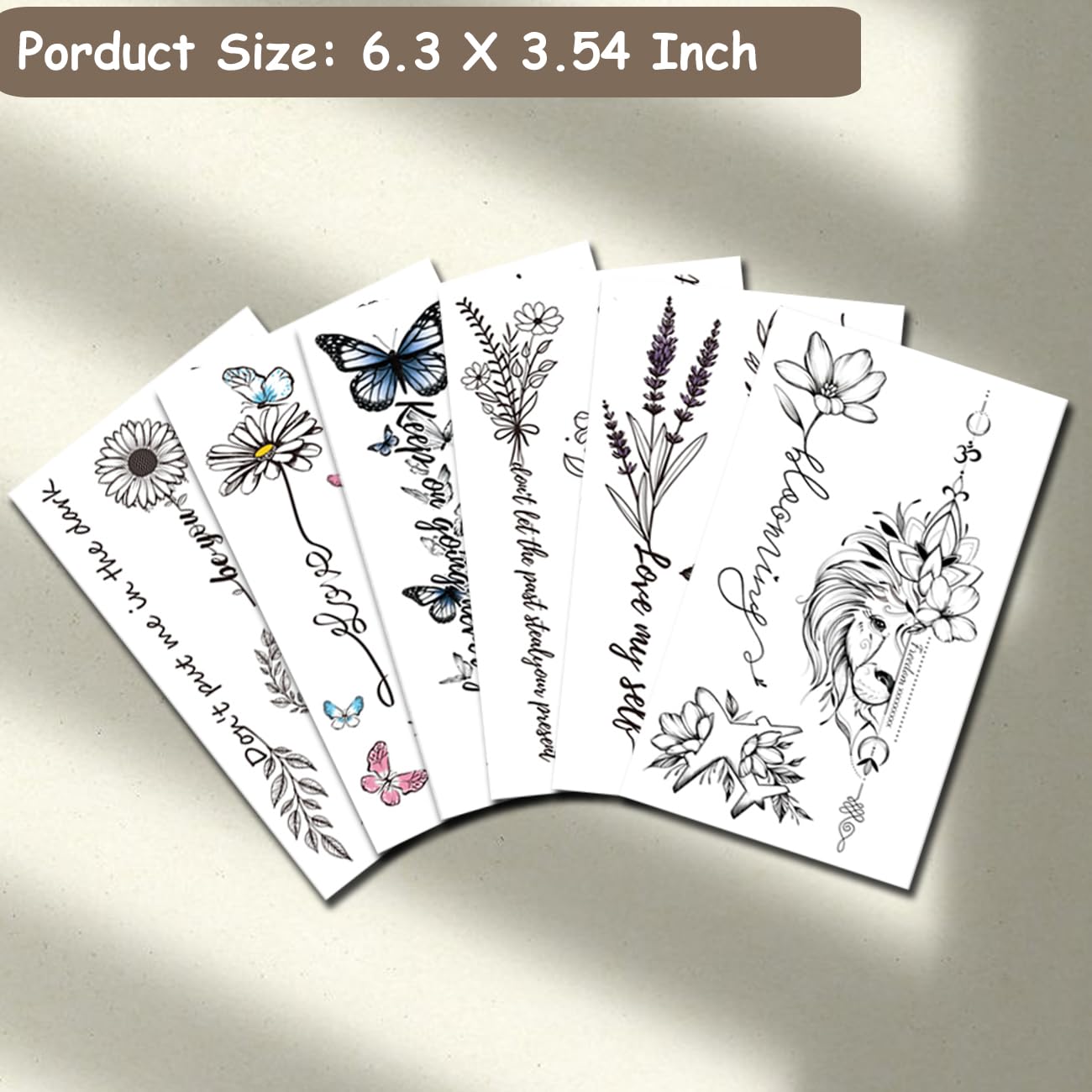 CHARLNET Flower Words Temporary Tattoos for Women Girls