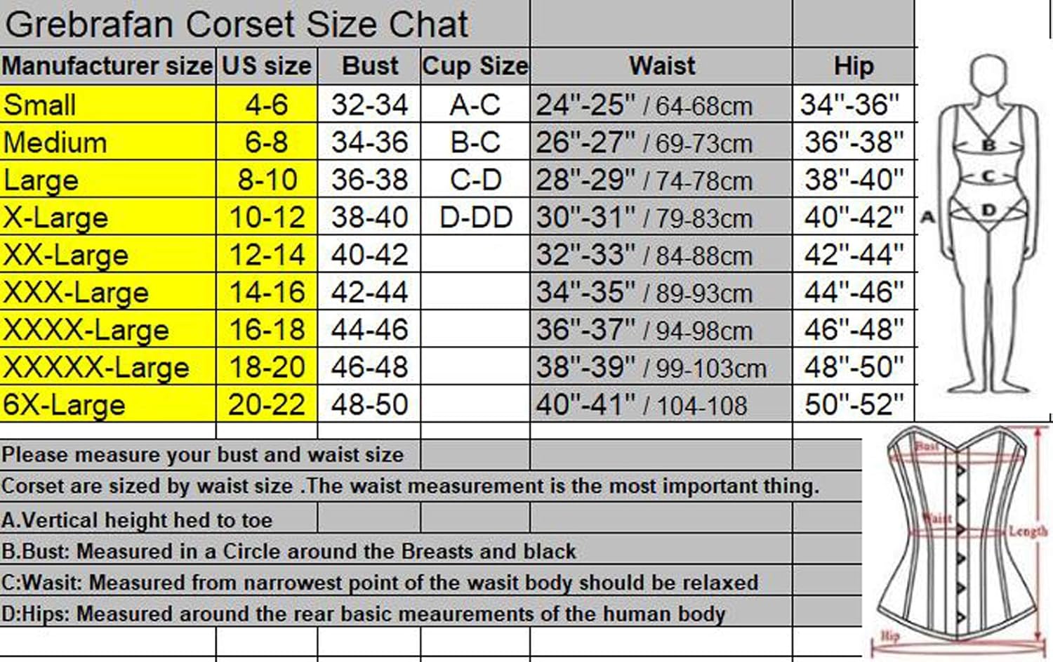 - Sizing: Corsets are sized by waist size. The waist measurement is the most important thing when sizing for a corset.