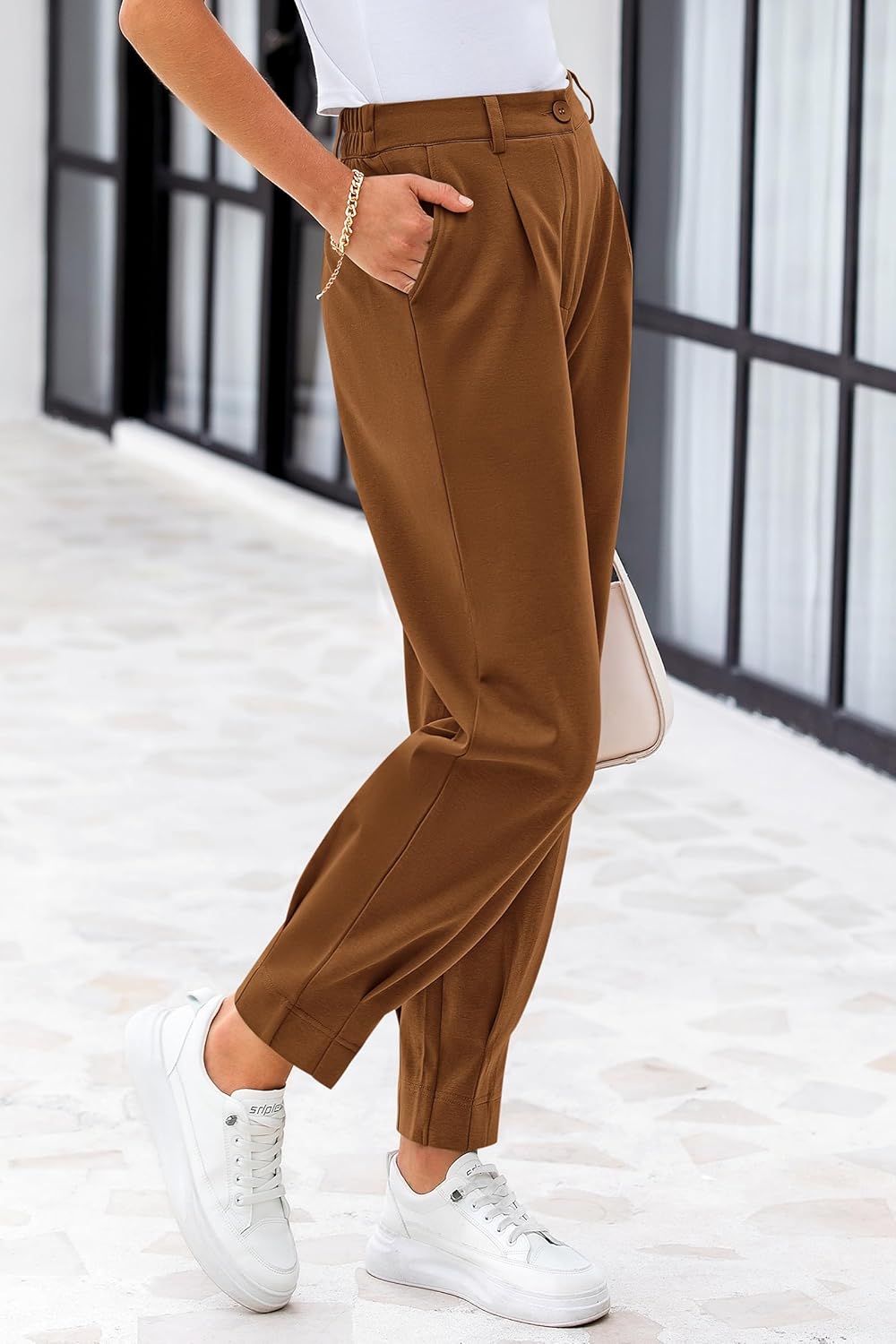 Women’s High Waisted Pants Dressy Casual Ankle Length Work Office Trouser Slacks with Pockets