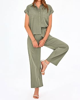 Travel friendly plain palazzo trouser and matching short sleeve comfy top