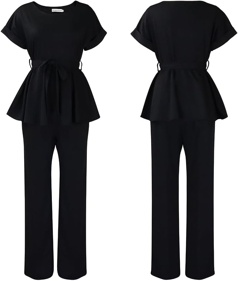 Ekaliy Women’s Fashion Short Sleeve Peplum Tops High Waist Pant Lounge Sets
