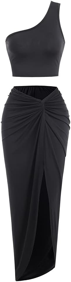 One Shoulder Two Piece Twisted Side Asymmetrical Skirt Set