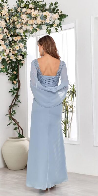TORYEMY Cape Sleeve Mother of The Bride Dresses Mermaid long Chiffon Lace Mother of The Groom Dresses for wedding Price: (as of – Details) Customers say: flattering Fit: Customers find the dress flattering and fitting well. Unique Color: They appreciate the unique wisteria color. Global Appeal: Customers find it beautiful on all sizes. Size…